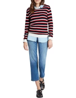 Discount π David Lawrence Striped Cable Knit Midnight π