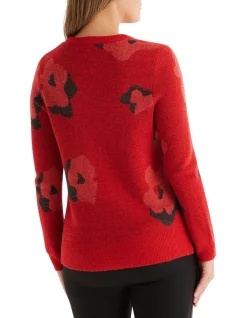 Outlet π― Marco Polo Long Sleeve Floral Block Knit In Red π