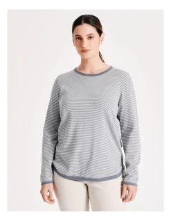 Budget π Regatta Crew Neck Long Sleeve Jumper With Curved Hem Blue Stripe π