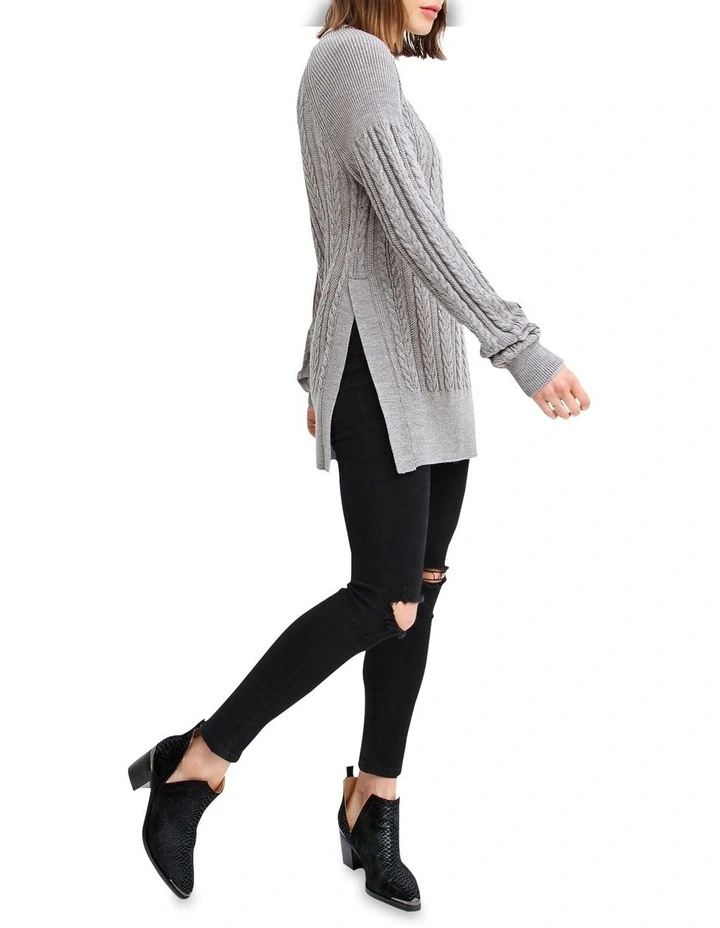 Soft and comfortable, theΒ At Last Cable Knit Jumper with SlitΒ offers a long line silhouette with a surprise slit. Complete your look with a leather belt or let the fine cable knit stand out on its own for a relaxed look.