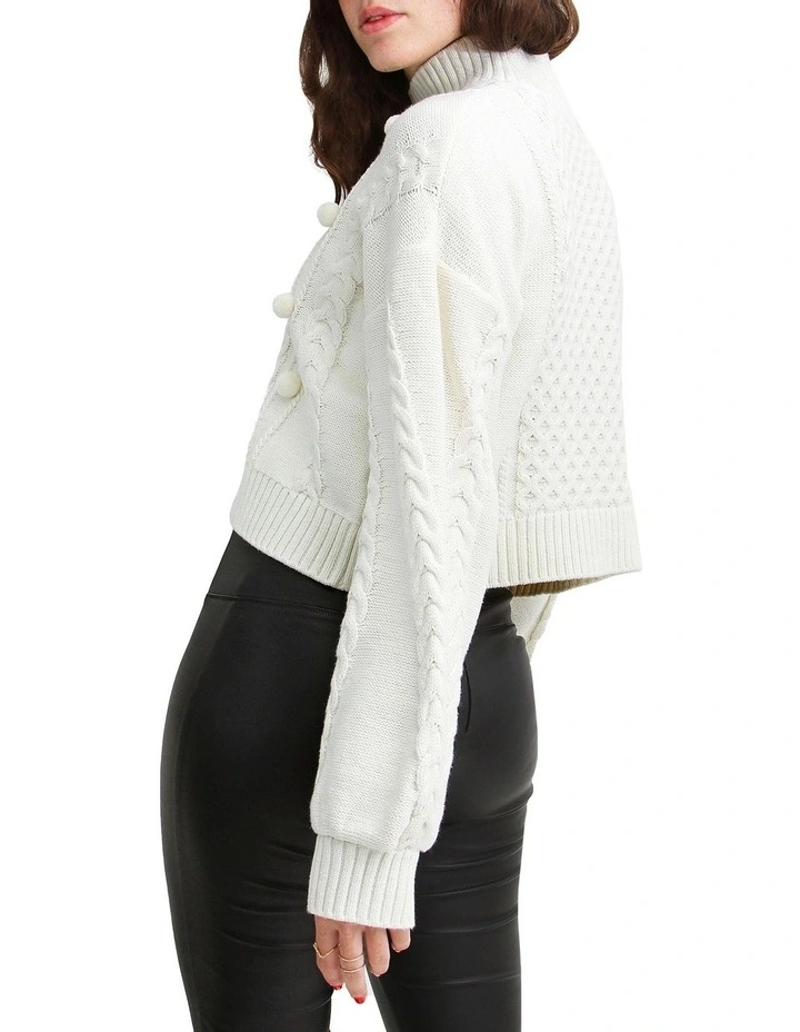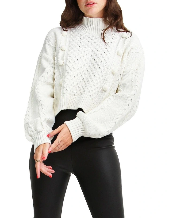 The ultimate statement jumper, theΒ Higher Love Cropped Cable Knit JumperΒ has the trending slouchy, cropped silhouette, adorned with large cable sleeves and pompom details at the front.