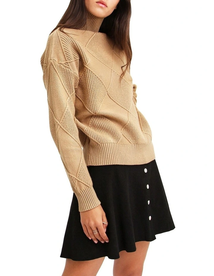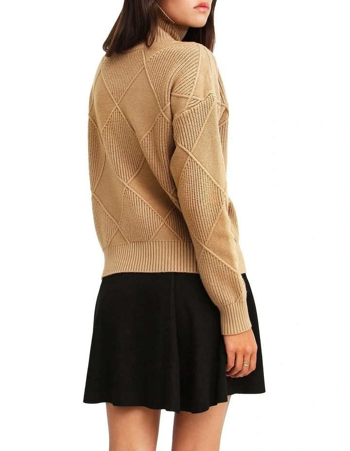 Beautifully stitched,Β The Academy Turtleneck JumperΒ features an intricate diamond novelty pattern, providing a modern twist on the classic argyle. With ribbed finishing on the sleeve cuffs, hem and turtleneck, this sweater pairs perfectly with both skirts and jeans.