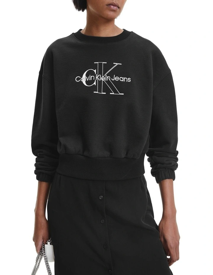 Clean. Effortless. Inclusive. Discover quintessential Calvin styles in an extended size range, designed for every body. This cropped sweatshirt is crafted from a cotton french terry fabrication featuring a regular fit, crew neckline, elasticated cuffs, soft peached finished and Calvin Klein monogram embroidery on the chest.