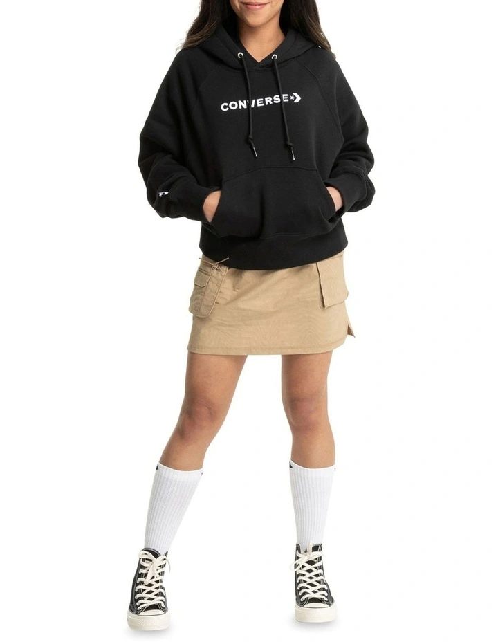 Everybody needs a go-to hoodie. This one has it all, in a comfortable standard, soft mid-weight fleece for warmth, and neutral, goes-with-everything color. Standby features like an adjustable hood, kangaroo pocket, and ribbed cuffs stay true to the classic hoodie style, while an embroidered wordmark elevates the look.
