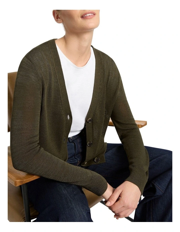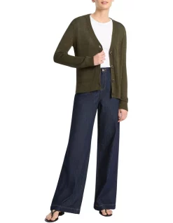 Creating a lightweight layer perfect for summer, this knit cardigan feels gorgeously soft against the skin, made from a linen blend yarn in beautiful azure blue. Delivering deep V-neck shaping as it fastens at the front with tortoiseshell buttons, the cardigan offers an easy, relaxed fit with slim fit long sleeves, finished with side seam splits at the hem and rib trim at the cuffs and waist.Β
