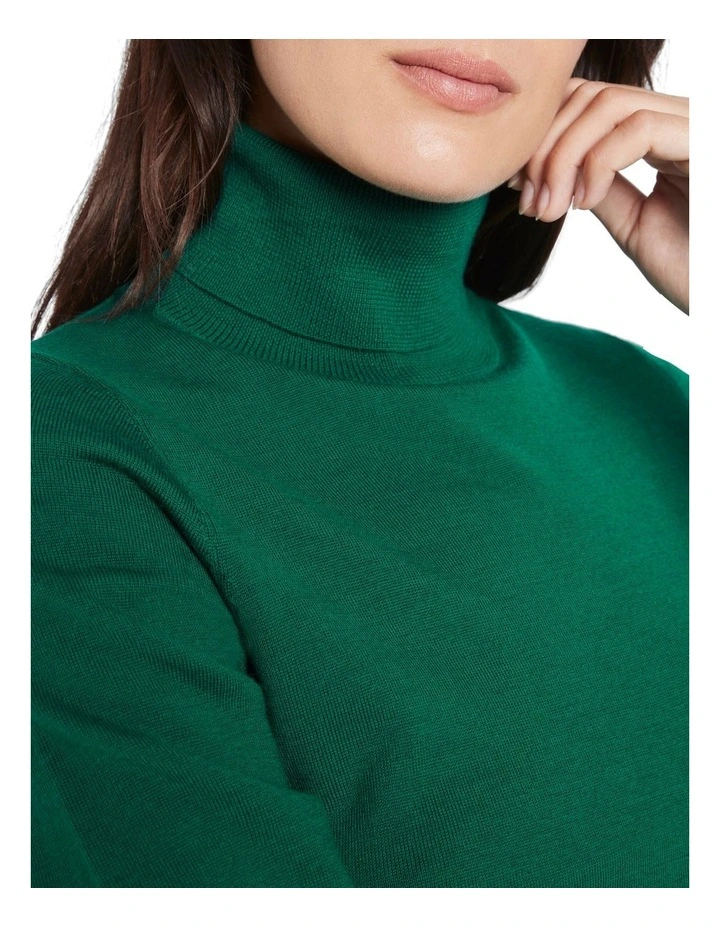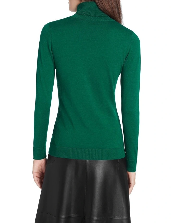Creating a gorgeous, lightweight option perfect for layering, this long sleeve knit sweater is made from softΒ woolΒ yarn, offered in an emerald green colouring. Featuring a slim fit throughout, the sweater is further enhanced by feature rib detailing at the side of the body, finished with fine rib trim at the neat fit roll neck, sleeve cuffs and body hem.
