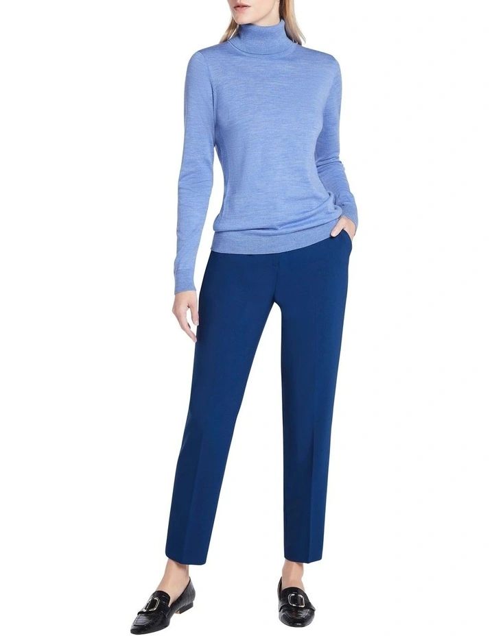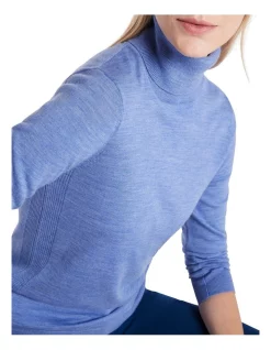 Creating a gorgeous, lightweight option perfect for layering, this long sleeve knit sweater is made from softΒ merino wool yarn, offered in a periwinkle colouring. Featuring a slim fit throughout, the sweater is further enhanced by feature rib detailing at the side of the body, finished with fine rib trim at the neat fit roll neck, sleeve cuffs and body hem.