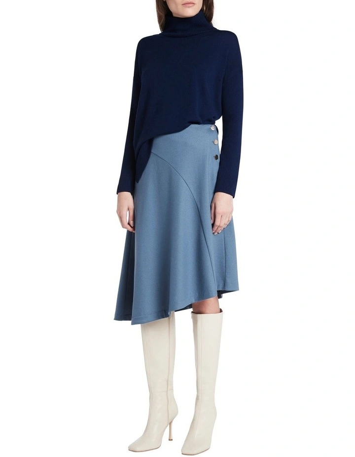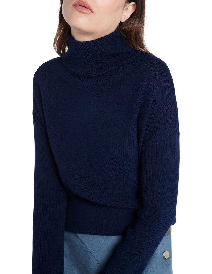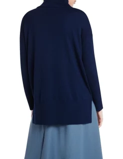 Lightweight yet warm, this long sleeve knit sweater feels gorgeously soft against the skin, made from pure Merino wool in a rich navy hue. Showing off textured rib detailing, the sweater offers a regular fit with dropped shoulder shaping, finished with a high neckline and deep splits at the hem on each side.