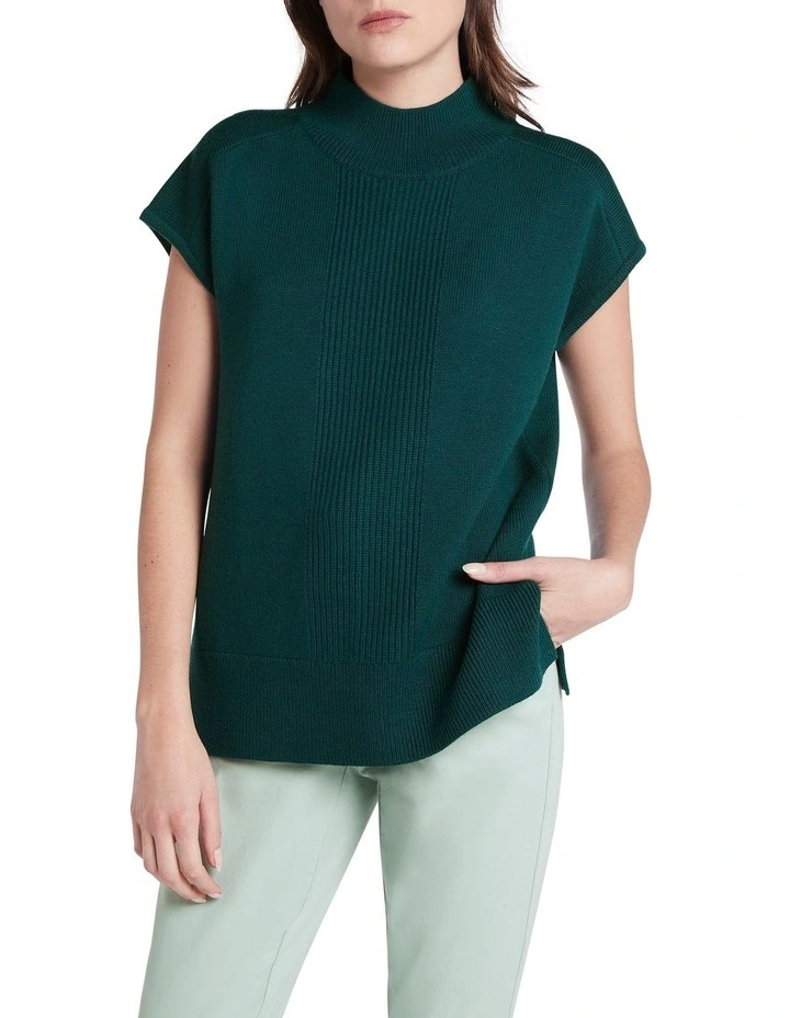 Absolutely captivating in rich pine green, this knit gilet feels super soft against the skin, made from a fine, lightweight yarn. Relaxed through the body, the top features a high neckline and angled grown-on sleeves, finished with rib detailing through the front, centre-seam detailing at the back, and fine rib trim at the neck, cuffs and body hem.