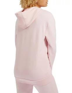 - Tubular knit drawcord hood with branded metal ends through branded metal eyelets