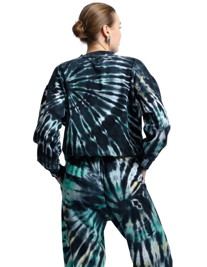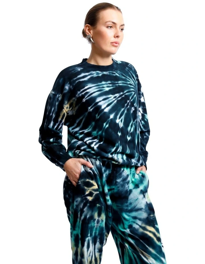 The Voodoo Tie Dye Sweat designed by Love and Nostalgia is constructed with a funky tie dye detail with pure cotton terry for your loungewear needs.