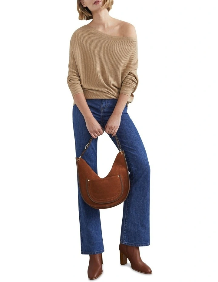 Our Ribbed Off Shoulder Knit offers a flattering silhouette for every body. Featuring a gorgeous off the shoulder design in a ribbed fabric with a relaxed fit, natural stretch and fitted waist. This garment is made from LENZING ECOVERO, an eco-responsible viscose fibres made from naturally biodegradable wood pulp. Pair with our Girlfriend Fit Jean and Luca Chelsea Boot. Model wearing our camel and light grey marle colourways wears size AU 8/XS. She usually wears a standard AU 8/Extra Small, is 180cm tall, and has a 86cm bust, 95cm hips and 69cm waist.Model wearing our black colourway wears size AU 8/XS. She usually wears a standard AU 8/Extra Small, is 176cm tall, and has a 84cm bust, 89cm hips and 61cm waist.