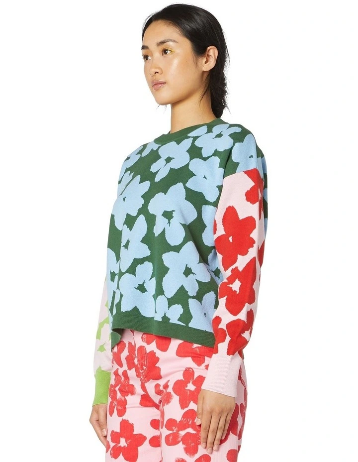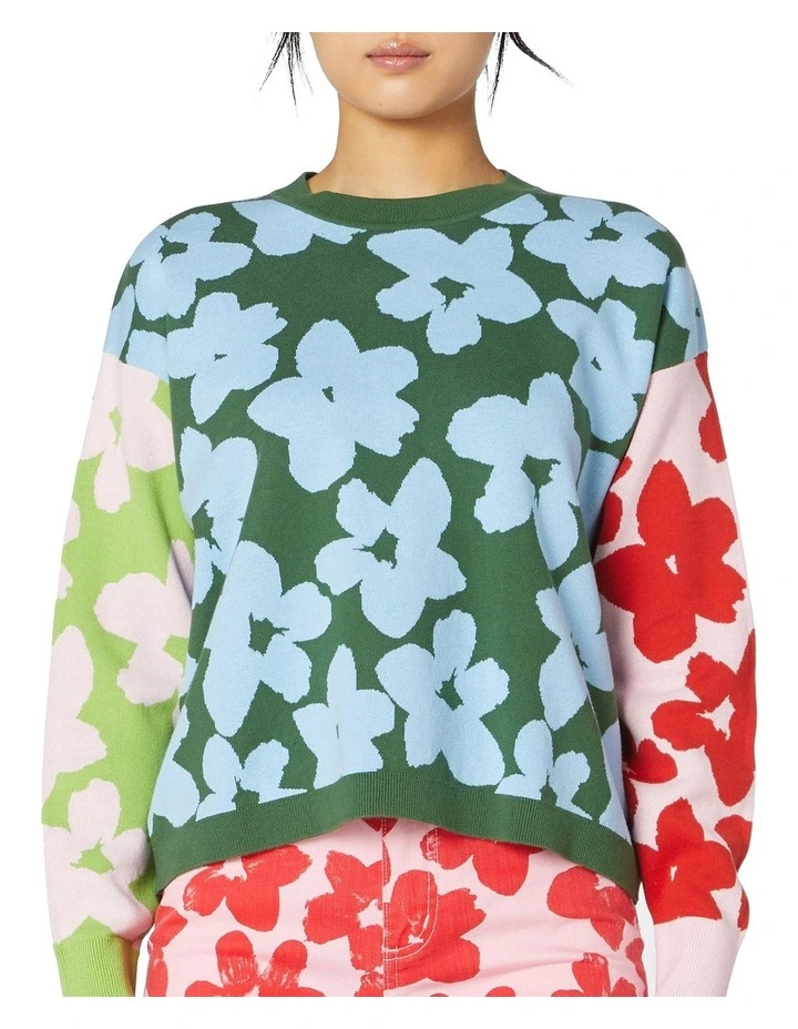 Spliced organic cotton jacquard jumper