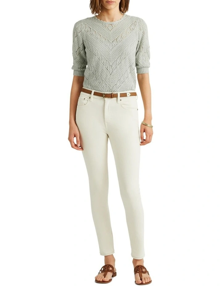 Cut from light-as-air linen, the essential sweater is updated with puffed sleeves and a chevron pointelle knit.