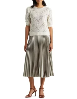 Cut from light-as-air linen, the essential sweater is updated with puffed sleeves and a chevron pointelle knit.