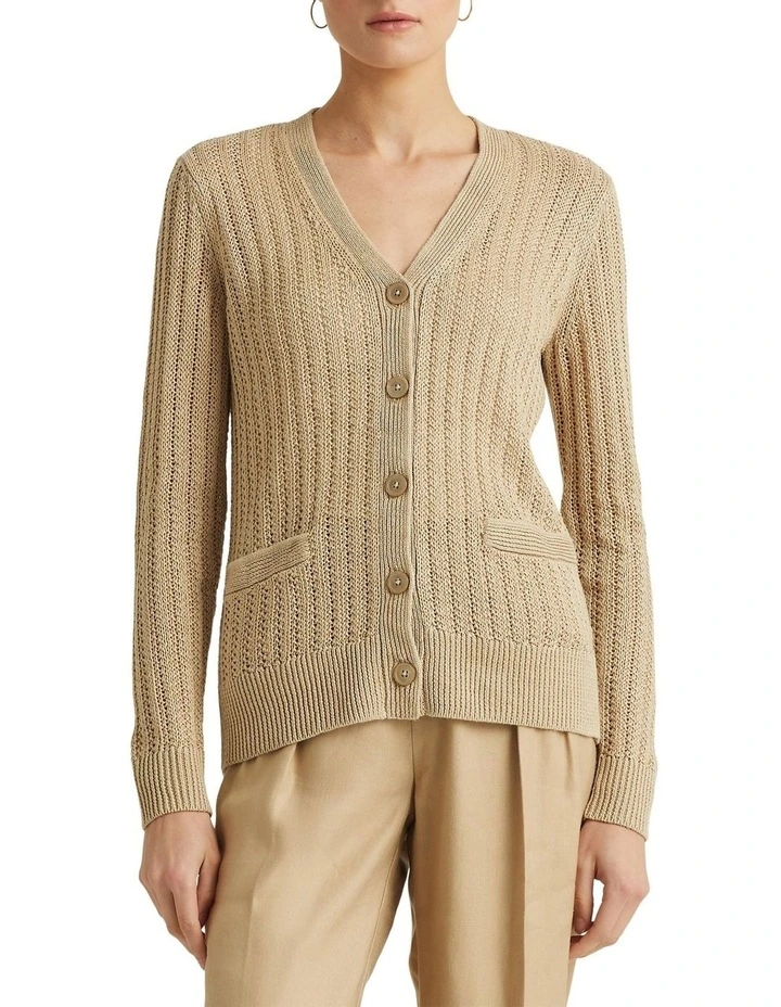 Spun from light-as-air linen for ultimate comfort, this stylish long-sleeve cardigan is the perfect transitional layering piece. It’s characterized by a timeless basket weave, and signature engraved pearlized buttons provide an iconic Lauren Ralph Lauren finish.