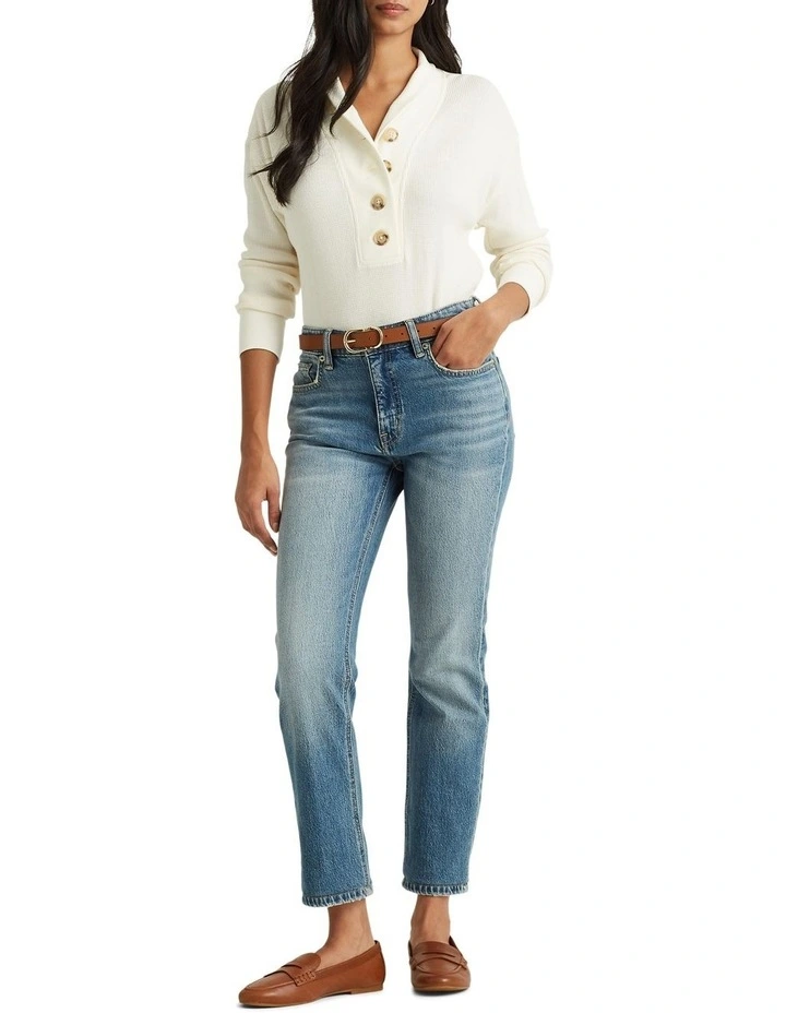 - Ribbed mockneck. Four-button placket with Lauren Ralph Lauren-engraved horn-effect buttons.