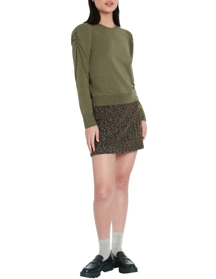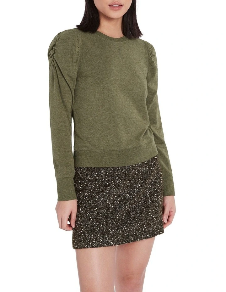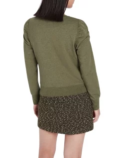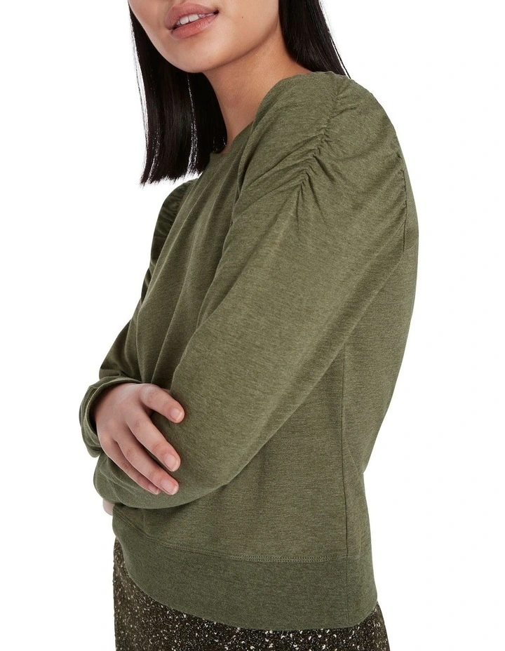Revealing a soft marle effect within easy-wearing khaki, this long sleeve sweater plays it cool within a slim, effortless fit, while drawing the eye to statement ruching at the shoulder. Lightweight in design, the sweater is made from a blend of cotton and modal, perfectly accentuated by soft rib trim at the crew neckline, sleeve cuffs and body hem.