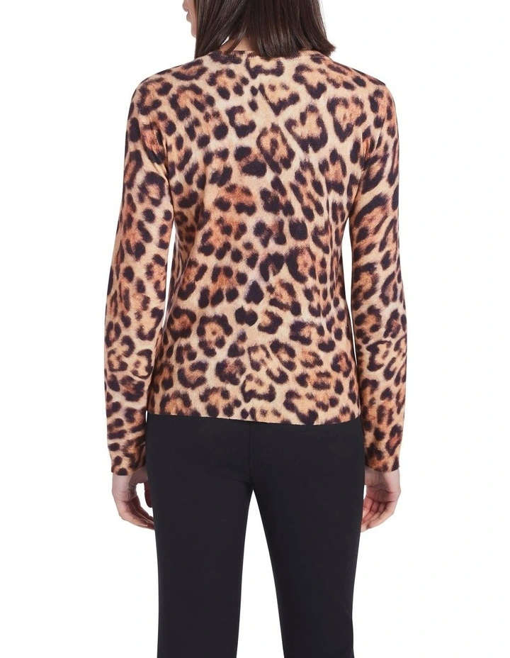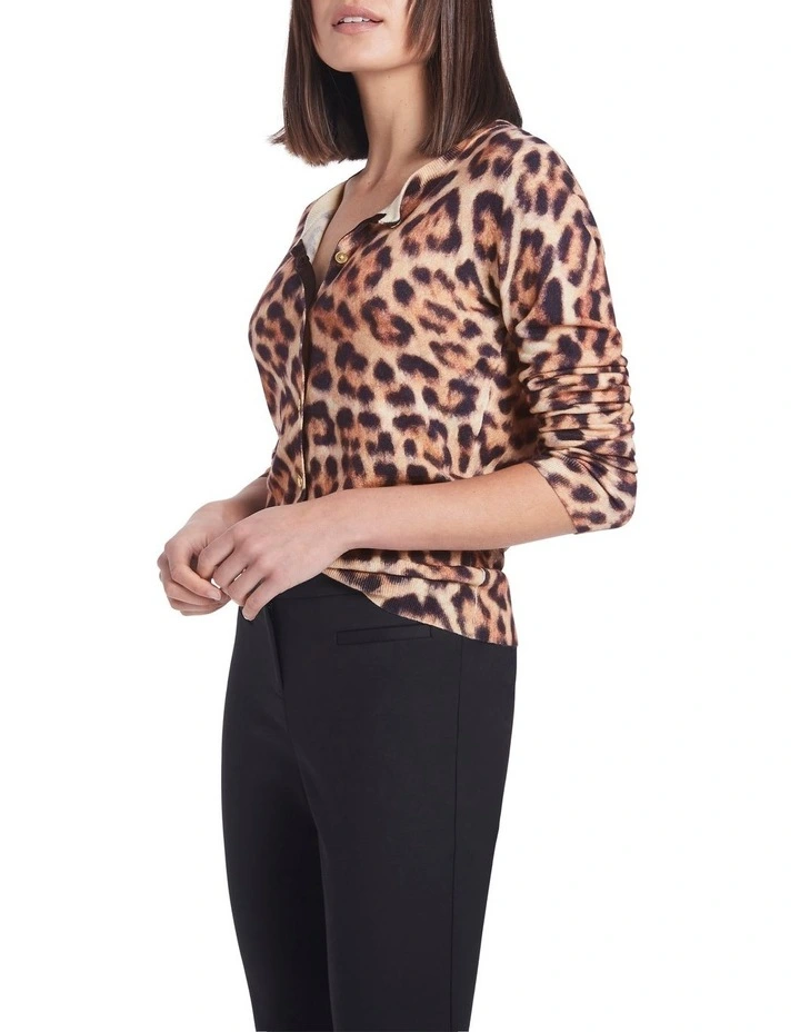 Worn buttoned up as a top or layered over a tee, this knit cardigan cant help but turn heads as it shows off a gorgeous animal print accentuated by gold button detailing. Made from a soft-touch yarn blend of cotton and wool, the cardigan creates a regular fit with a crew neckline and long sleeves, further enhanced by fine rib trim at the neck, cuffs and body hem.