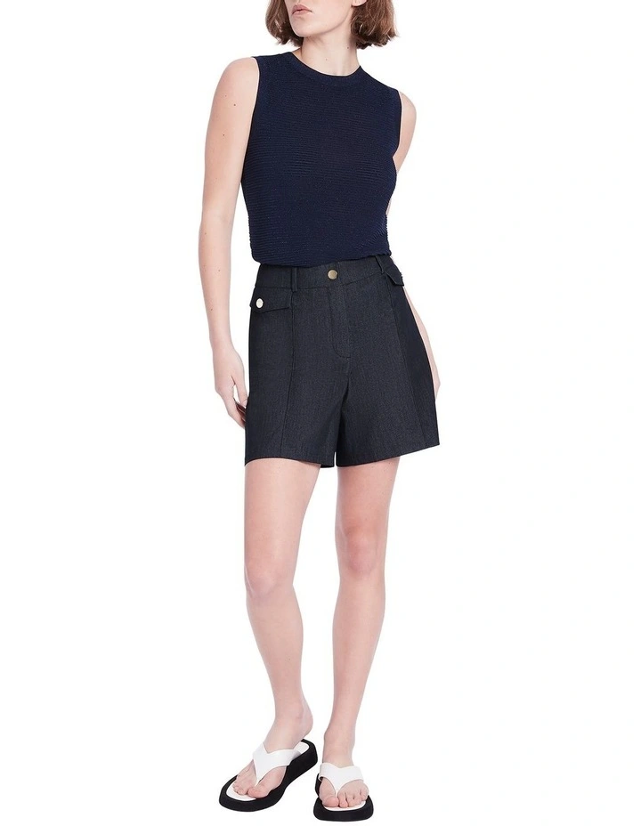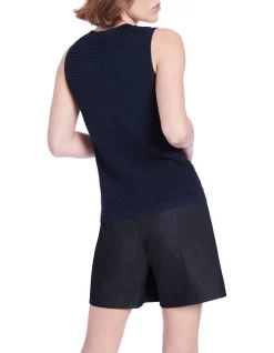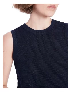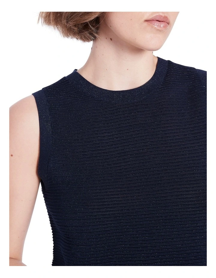 Shimmering delicately through rich navy, this knit tank is made from a soft yarn blend threaded through with metallic lurex accents. Sleeveless in style, the tank delivers an effortless regular fit, with further detail found in horizontal Ottoman-style rib detailing through the body, and fine rib trim at the armholes, crew neckline and body hem.