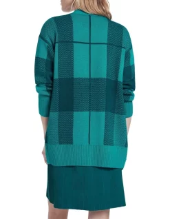 Creating a beautiful layering piece through winter, this cardigan reveals a bold plaid design in shades of sea green. Oversized in its fit, the cardigan offers a relaxed design with dropped shoulder shaping and front patch pockets. Showing off a deep V-neckline when buttoned at the front, it is completed by extended rib trim at the body hem and cuffs.
