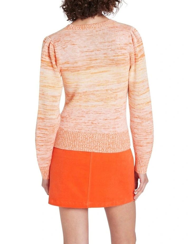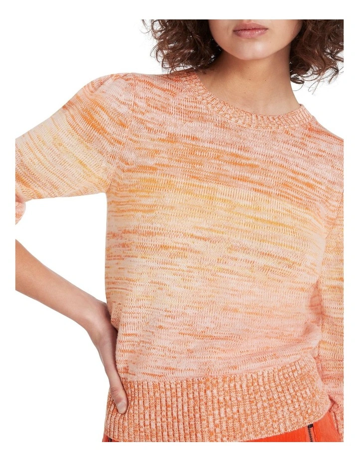Using space dye yarn to play with colour, this long sleeve knit sweater effortlessly blends shades of blush pink, yellow and apricot, while remaining enticingly soft against the skin in a blend of wool and cotton. Offering a slim fit through the body, the sweater flatters further with subtle puff shaping at the shoulders, and chunky rib trim at the crew neckline, cuffs and broad body hem.