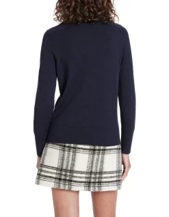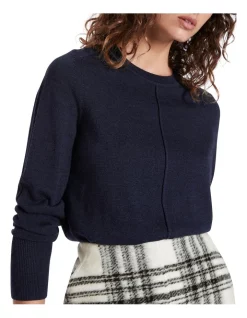 Lightweight in style, this long sleeve knit top reveals a navy colouring, made from pure Australian Merino wool thats so soft, youll never want to take it off. Offering a regular fit throughout, the top is further enhanced by seam detailing at centre-front, textured rib stitching at the outer arm, and fine rib trim at the crew neckline, sleeve cuffs and broad body hem.