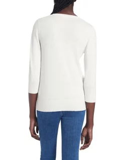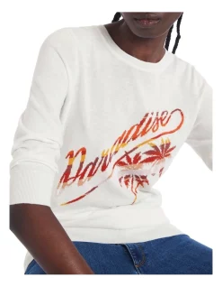 Revelling in its retro-styled artwork, this knit top flaunts a bold multi-tonal intarsia across the chest, which plays perfectly against its crisp ivory base. Lightweight in design, the top is made from pure cotton yarn, which works to create a regular fit with three-quarter length sleeves, finished with fine rib trim at the crew neckline, cuffs and body hem.