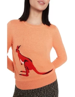 Playful in its design, this long sleeve knit sweater shows off a gorgeous salmon colouring, featuring cute kangaroo intarsia artwork through the front of the waist. Delightfully soft against the skin, the sweater creates a lightweight look made from a blend of cotton, silk and cashmere, offering up a slim fit throughout, with neat rib trim at the crew neckline, cuffs and body hem.
