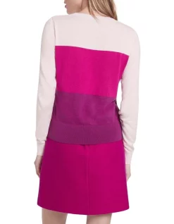 Flaunting a striking colour block effect, this lightweight knit top draws the eye to its tonal colouring, featuring horizontal stripes in peachy pale shell, plum and magenta. Luxuriously soft, the top is made from a fine yarn blend of cotton, silk and cashmere, which works to create a slim fit with long sleeves, finished with rib trim at the crew neckline, cuffs and body hem.