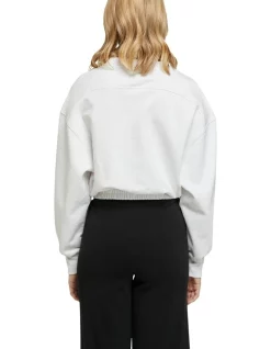 Update your loungewear collection with the Harlow Crop Sweatshirt, the perfect choice for working from home or relaxing on the weekend. This regular fit jumper is crafted from 100% organic cotton and features a cropped cut with a crew neckline and elastic cuffs. Team it with some wide leg lounge pants and sneakers for a laid-back look. Our model is wearing size 8 jumper and usually takes a size 8. She is 178cm (584) tall with an 81cm (32) bust, a 63cm (25) waist and 86cm (34) hips.