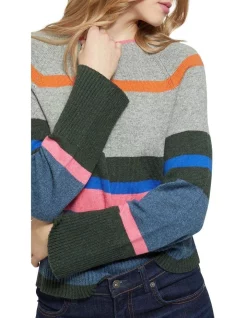 Brighten up your winter look with the Mia Striped Crew Neck Knit. This fun knit is crafted from a cotton and wool blend and cut in a slim fit. It features a multicoloured stripe pattern, wide sleeves and ribbed waistband. Complete your weekend look with some flared jeans and sneakers.