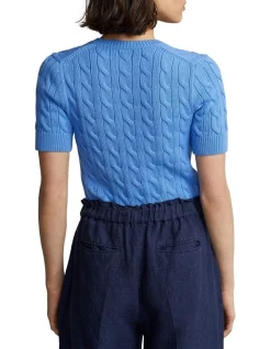 Hot Sale π Polo Ralph Lauren Cable-Knit Elbow-Sleeve Cotton Cardigan In Blue βοΈ