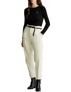 A slim fit and a classic cable-knit construction define this sweater’s pure Polo style. Team yours with everything from patterned pants to leather skinny jeans.