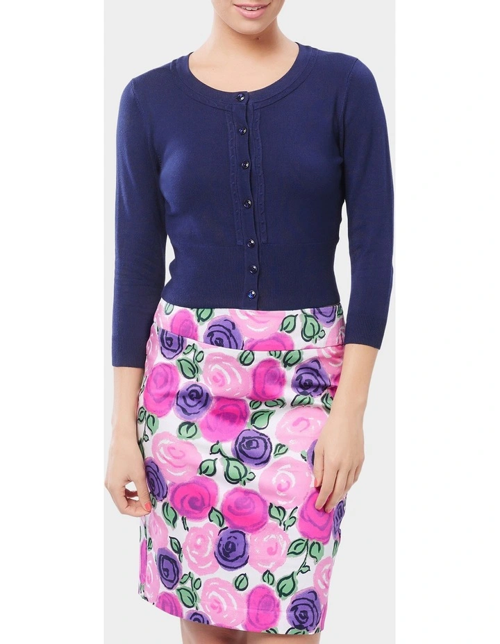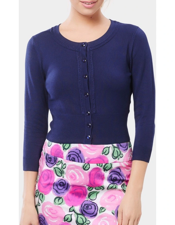 The classic REVIEW Chessie 3/4 Sleeve Cardigan is the perfect cardi for any occasion and a must-have wardrobe essential. It is a slightly cropped length with a wide hem band, cute embossed dot details and buttons dyed to match perfectly.