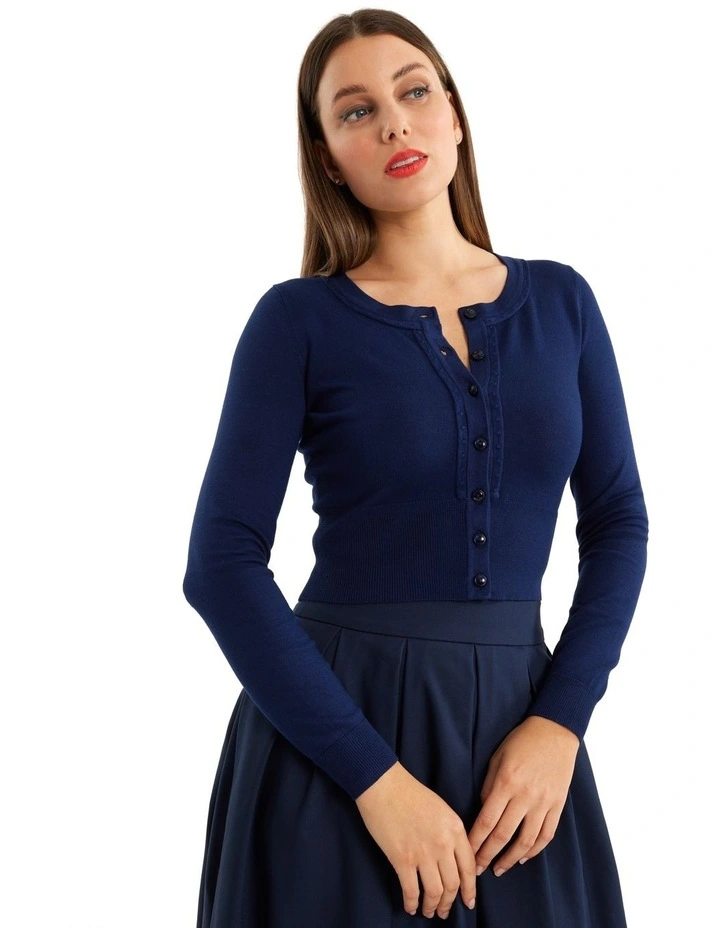 Features: Wide hem band, Embossed dot details, Front buttons, Long sleeves