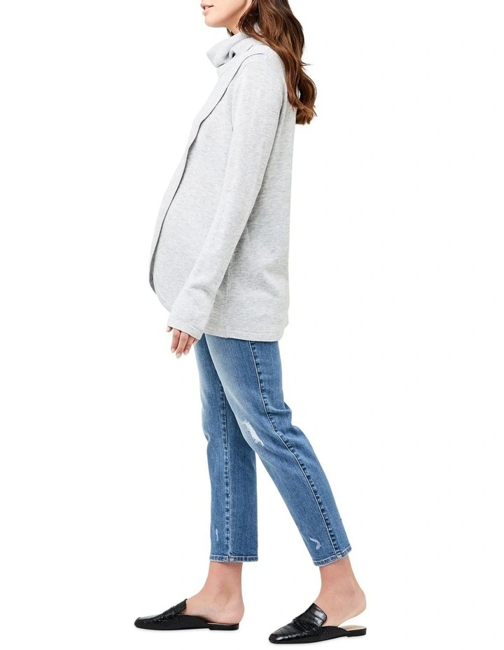 This knit is going to be on high rotation! Perfect for everyday wear, this piece was designed for both your maternity and nursing wardrobe. The fully-fashioned Cowl Neck Nursing Knit will keep your bump snug during pregnancy while the layered panels lift up quickly and easily, providing generous nursing access.