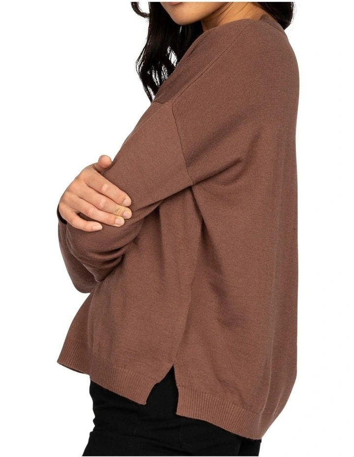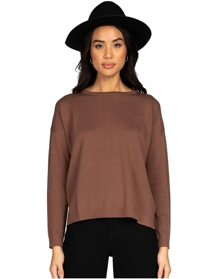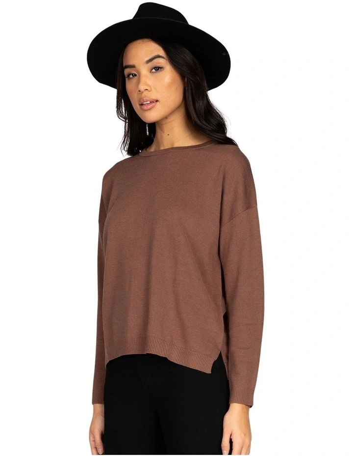 The Slung Crew Neck Layering Knit is the ultimate basic to add to your wardrobe. This light weight crew neck is made for layering, and features side splits and ribbed cuffs. This looks so cute paired with just about anything and the light weight wool blend makes it perfect for transitional season styling.