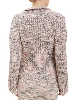 Knitted from organic cotton and premium cashmere, this eco-conscious sweater features a chunky knit design and puff shoulder. The pleat details and polo style collar give a structured silhouette to the jumper, and the marle pattern is streaked through with a rose colour.