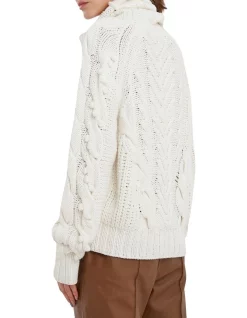 AΒ chunkyΒ hand knitted jumper with intricate cable detailing. Highlighted with chunky roll neck detailing, raglan sleeve and chunky rib detailing.