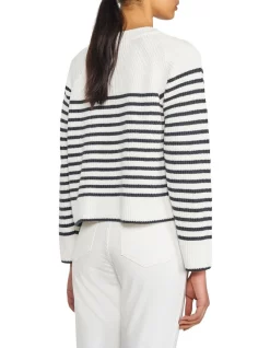 Featured in a chunky half cardigan stitch, our Cotton Button Detail Knit is a great addition to your spring wardrobe. Featuring button detailing at the sleeve head, contrast stripe detail and crew rib neckline. Pairs back great with our denim or drawstring tapered trouser.
