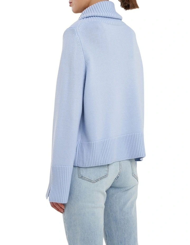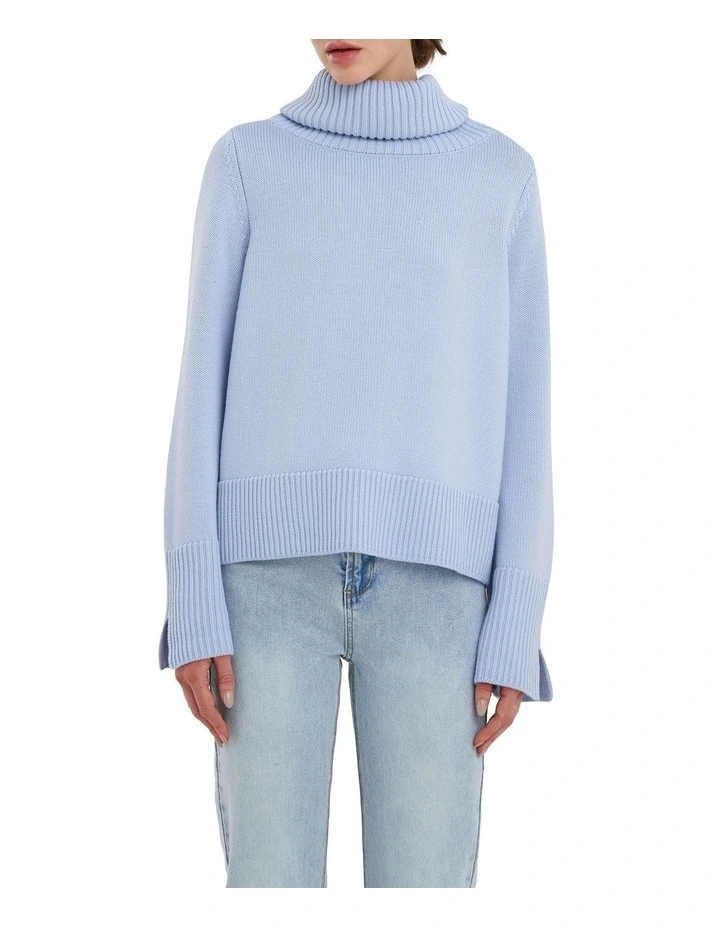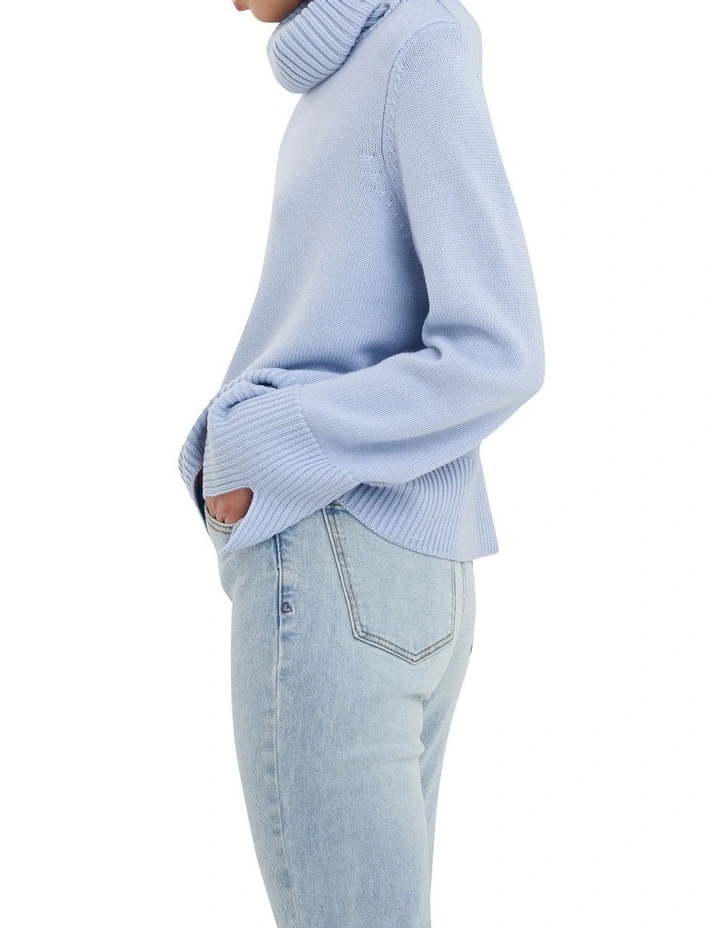 Our favourite roll neck knit, featured in our soft merino wool in aΒ freshΒ sky blueΒ colourway. Completed with a wide rib roll neck, wide rib cuff with splits and wide rib hem detailing.Β