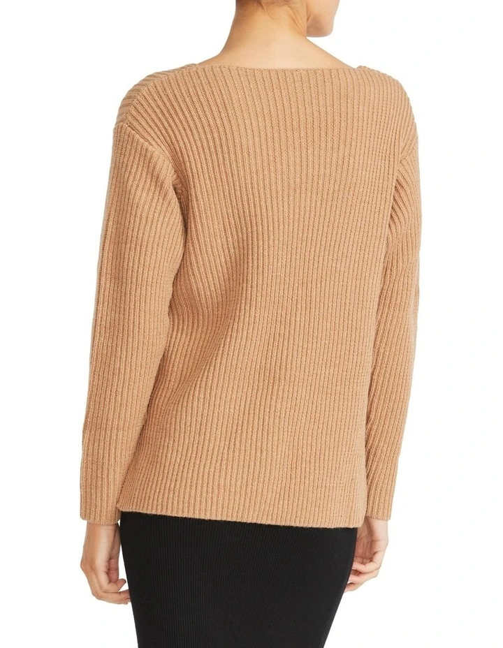 The Aubrey V-Neck Jumper will become your autumn essential this season. This style features a wool-blend, ribbed fabrication with full length sleeves, in a relaxed fit. Other features include side splits, and dropped shoulders. Finished in a warm caramel colourway, this slouchy knit is perfect on its own or works just as well as a layering piece. Pair with Staple the Labels Parker Wide Leg Jeans for an effortless everyday look.