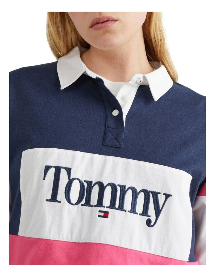 Part sporty, part streetwear, this colour-blocked polo is inspired by retro rugby shirts, with slightly dropped shoulders adding to its laid-back style.