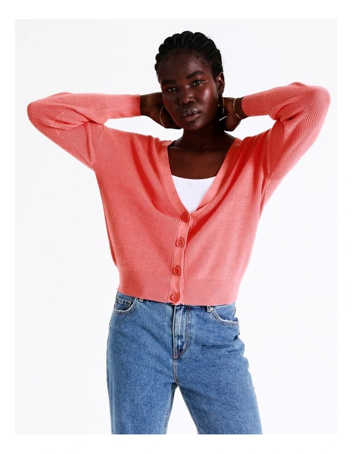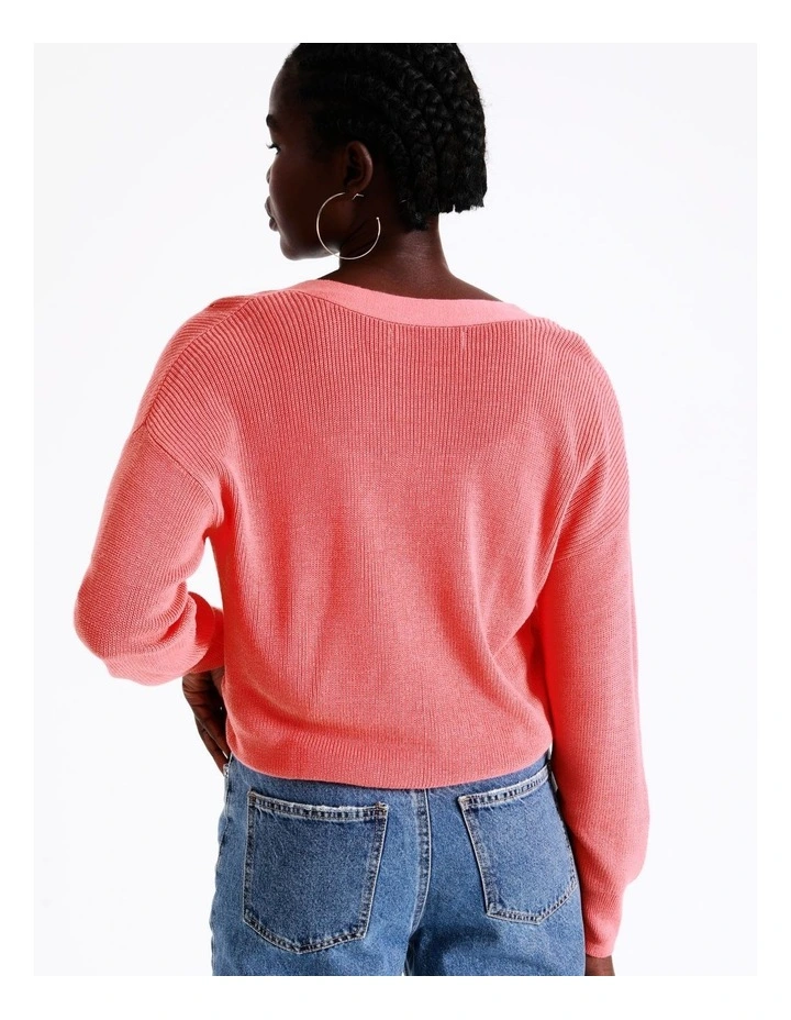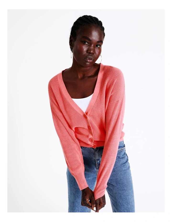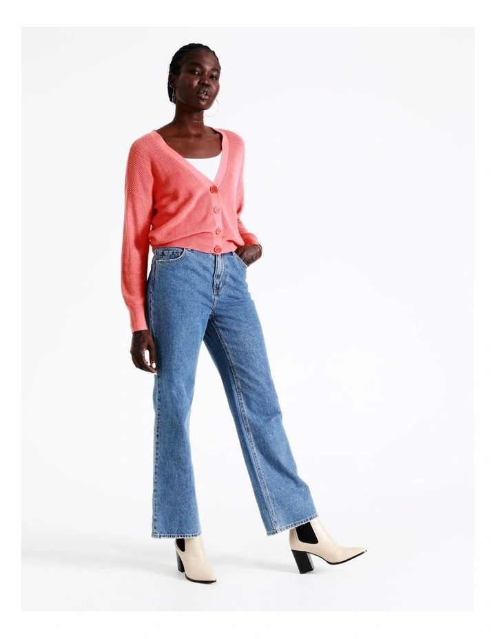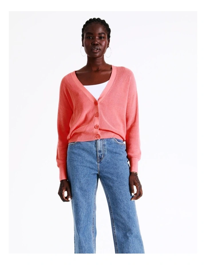 Knitted cardigan with a V-neck, dropped shoulders, and a regular fit. Style this cardigan with a pair of jeans and some chunky loafers for a cool, casual look.